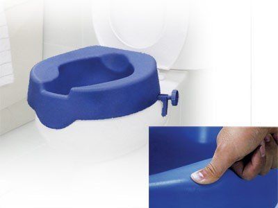 Sedia comoda con sedile anatomico imbottito, WC in materiale plastico facilmente lavabile.