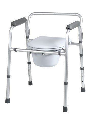 Struttura in alluminio con confortevole sedia in vinile e secchio in plastica, braccioli in plastica e puntali in gomma antiscivolo. Comprende quattro funzioni in una: