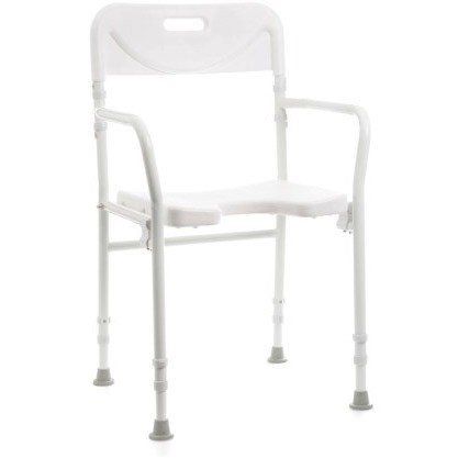 Sedia da doccia pieghevole, regolabile in altezza con puntali antiscivolo.